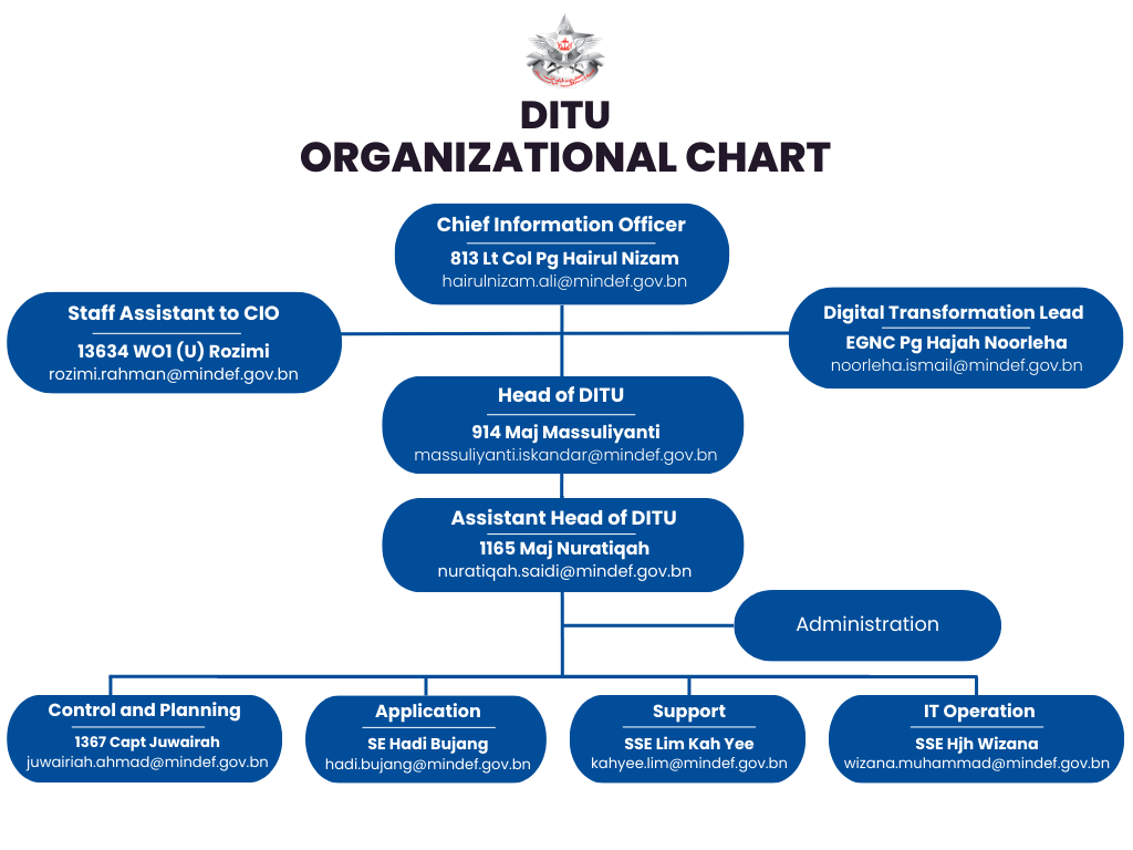 Defence Information Technology Unit (DITU), also known as Unit Teknologi Maklumat Pertahanan (UTMP) was officially launched on 9 July 2002 by Yang Berhormat Pehin Orang Kaya Amar Pahlawan Dato Seri Setia Awang Haji Zakaria bin Datu Mahawangsa Haji Sulaiman. It was inaugurated in Block 232 Bolkiah Camp.