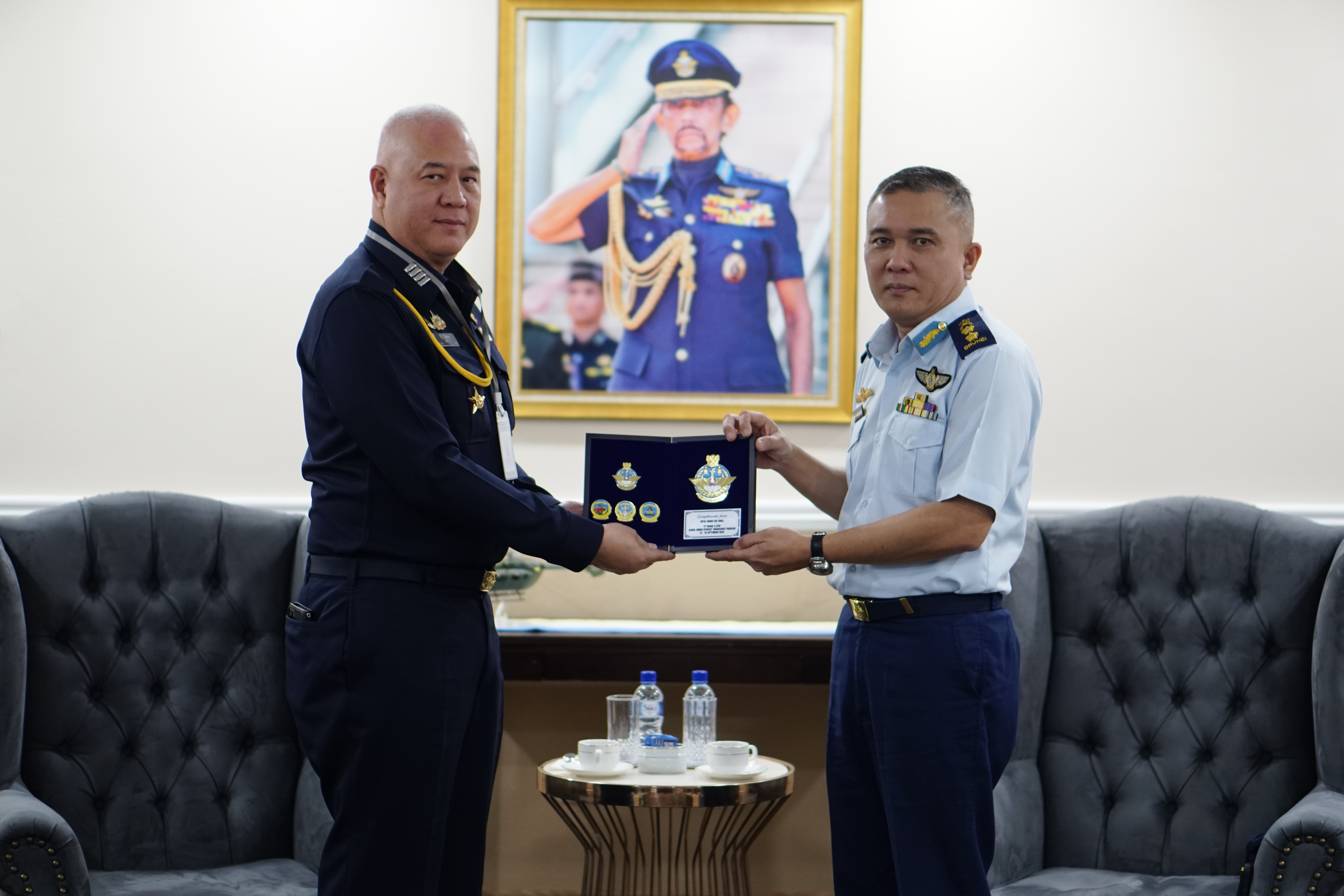 As part of the program, the RTAF delegation, led by Group Captain Gunn Manodham, Director of Security Division, Directorate of Intelligence, RTAF—paid a courtesy call on Colonel (U) Hismawadi bin Haji Said, Deputy Commander of the RBAirF. The delegation also received briefings on the organization of the RBAirF and were given insights into its operational and training capabilities.