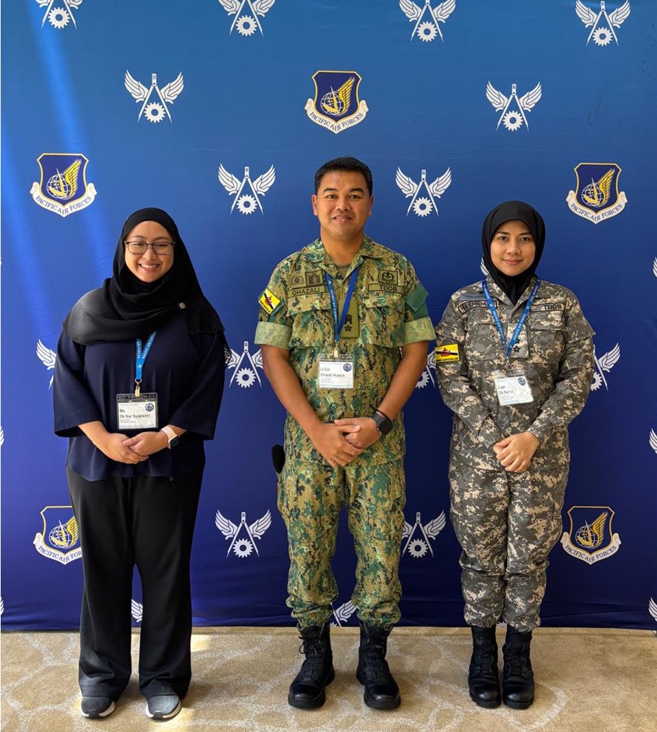 Brunei Darussalam's delegation was led by Lieutenant Colonel Mohammad Ghazali bin Haji Hussin, Commanding Officer, Engineer Regiment, Royal Brunei Land Forces, accompanied by Captain (U) Dk Nur'ul Hayatul Rashidah binti Pg Johari from the Royal Brunei Air Force and Dk Nur Syazwani binti Pg Haji Kamarulzaman from the Directorate of Development and Work Services.