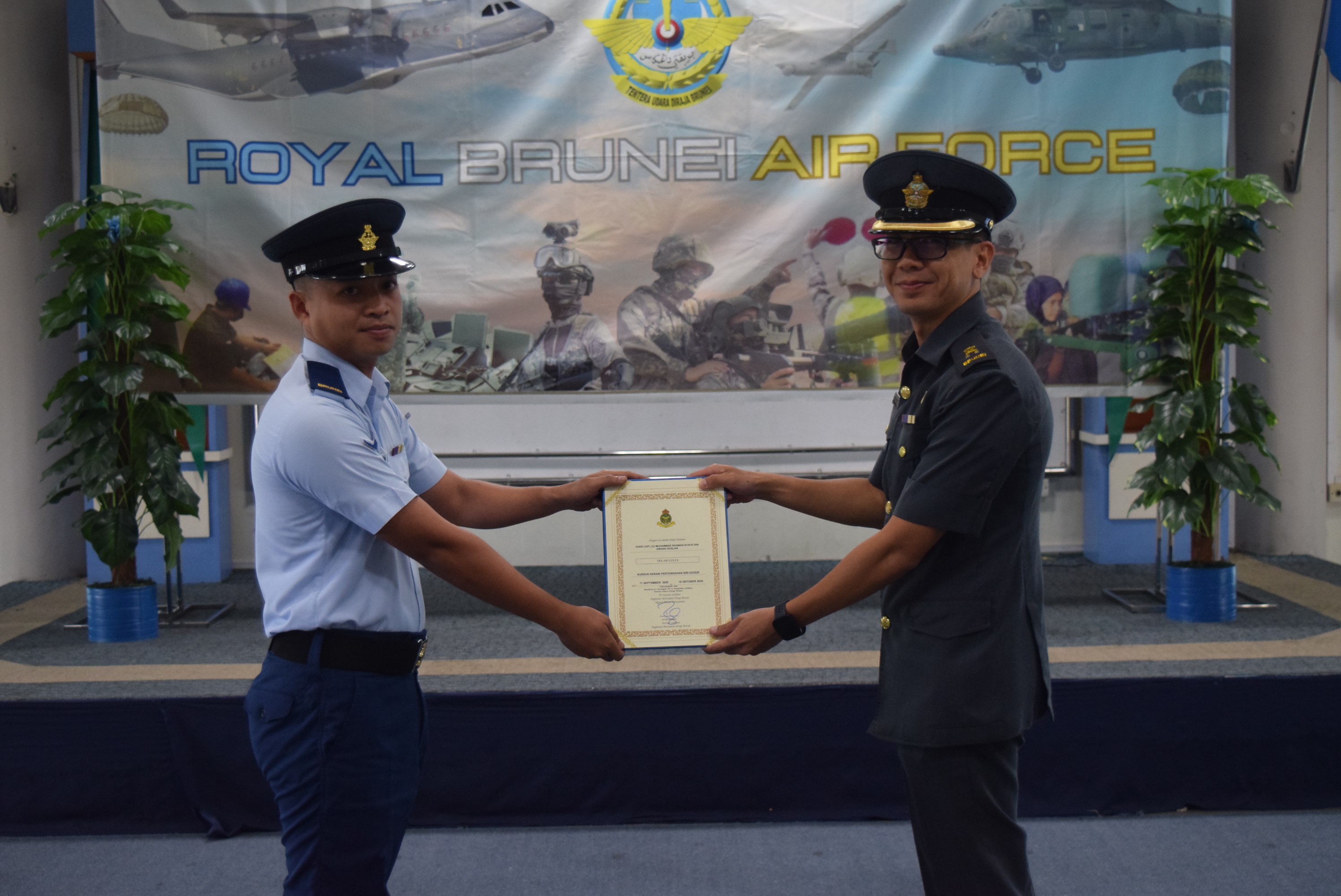 RIMBA AIR FORCE BASE, Thursday, 09 October 2025 – The closing ceremony for the Intermediate Clerk Course Series 01/2025 was held at Dewan Punai, Rimba Air Force Base (Rimba AFB). The event was graced by Major (U) Mohd Qamarularifin bin Haji Ramli, Squadron Commander of 82 Squadron, No. 8 Wing, Training Group, Royal Brunei Air Force (RBAirF), who served as the Guest of Honour. Also present were officers, instructors from 82 Squadron, and invited guests.