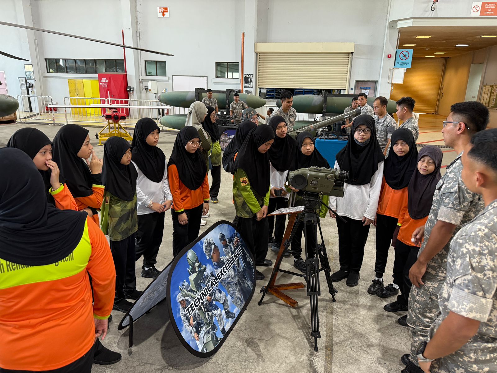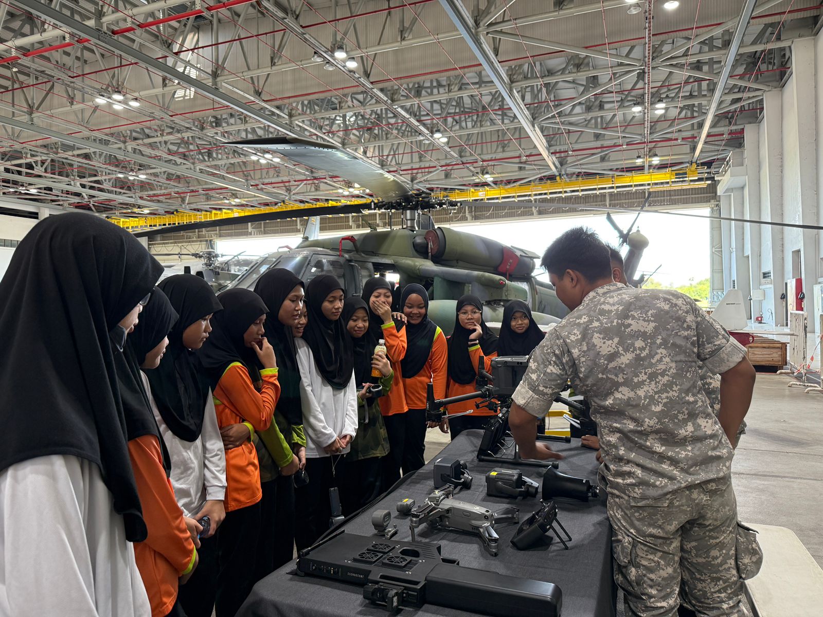 The group was welcomed and briefed by Staff Sergeant (U) Mohammad Sanusei bin Hj Nordin who introduced them to RBAirF and guided them on a tour to the static display showcasing the assets and equipment used by the RBAirF. The visit also includes activities for the students, enabling them to interact with RBAirF personnel and gain hands-on experience with the assets.