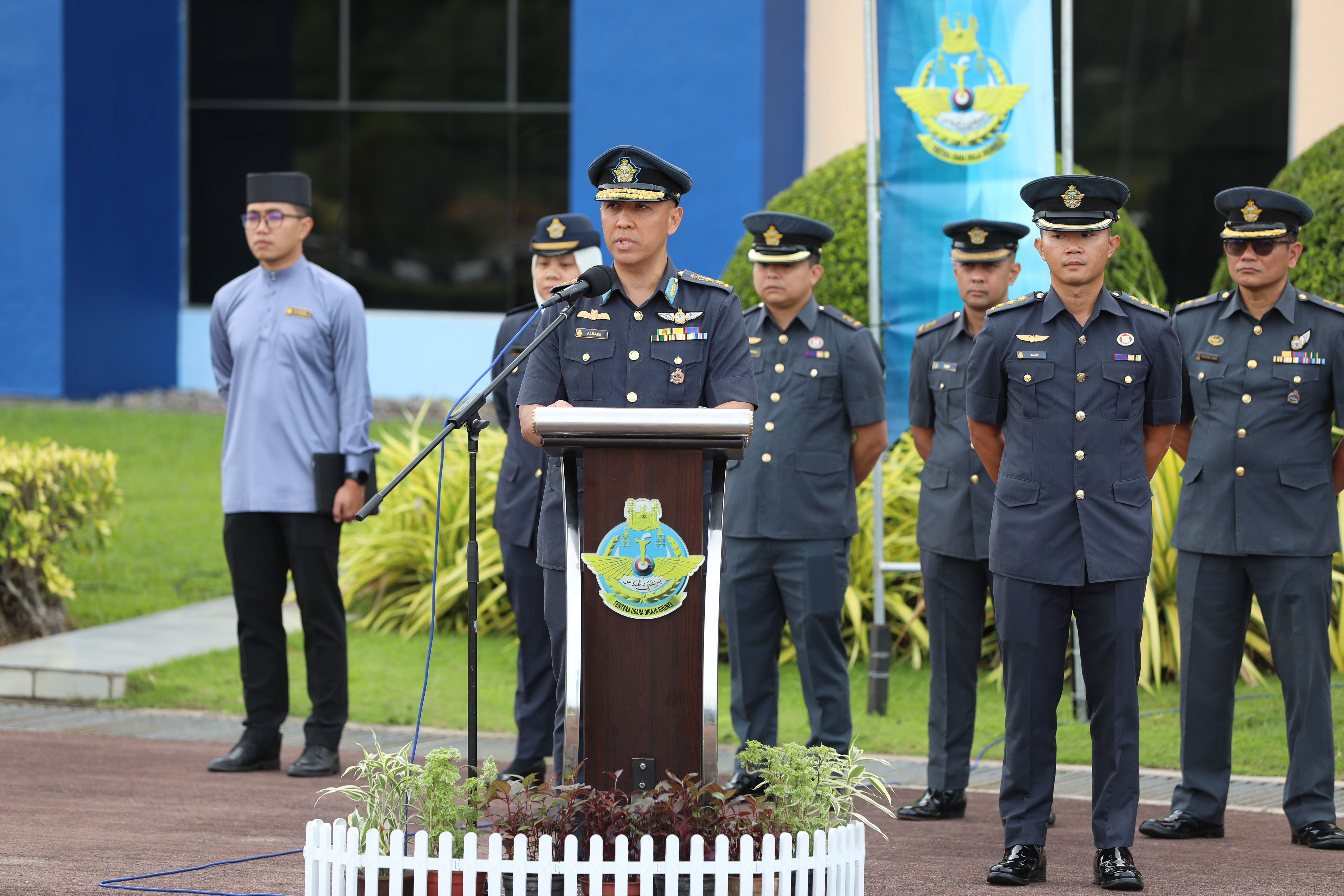 The ceremony began with the recitation of Surah Al-Fatihah and Doa Selamat led by Ustaz Pengiran Fakhrul Syakirin bin Pengiran Haji Zainuddin, the RBAirF Religious Teacher. This was followed by a farewell speech delivered by Colonel (U) Haji Mohd Albadii Shahnoel bin Haji Mohd Noeh, in which he expressed his heartfelt gratitude to His Majesty The Sultan and Yang Di-Pertuan of Brunei Darussalam for the trust and confidence bestowed upon him to hold the position and its responsibilities. He also reflected on his tenure and extended his sincere appreciation to all RBAirF personnel for their unwavering support and dedication throughout his service.